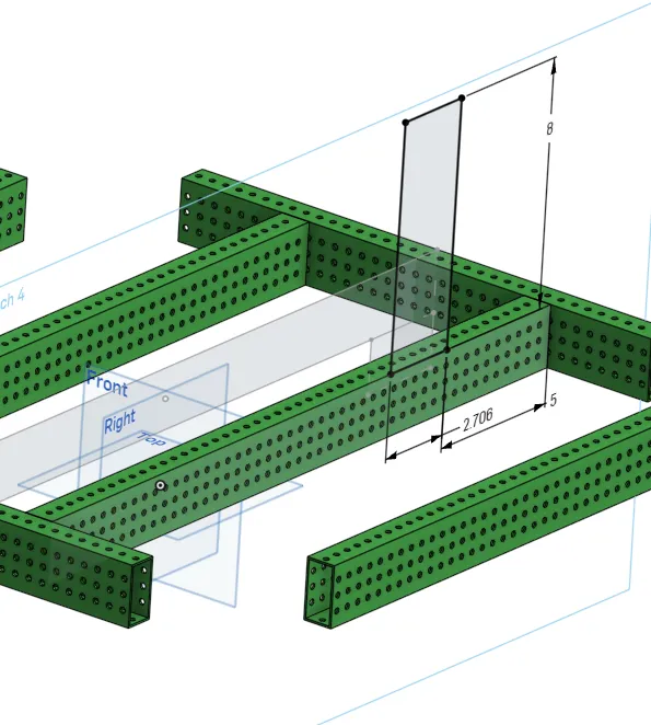 Let’s make this drivetrain a square. How would you approach your top sketch to avoid using any unnecessary dimensions? You should only need to define your swerve gap, the distance between your cross tubes (8 inches), and your tube offset.