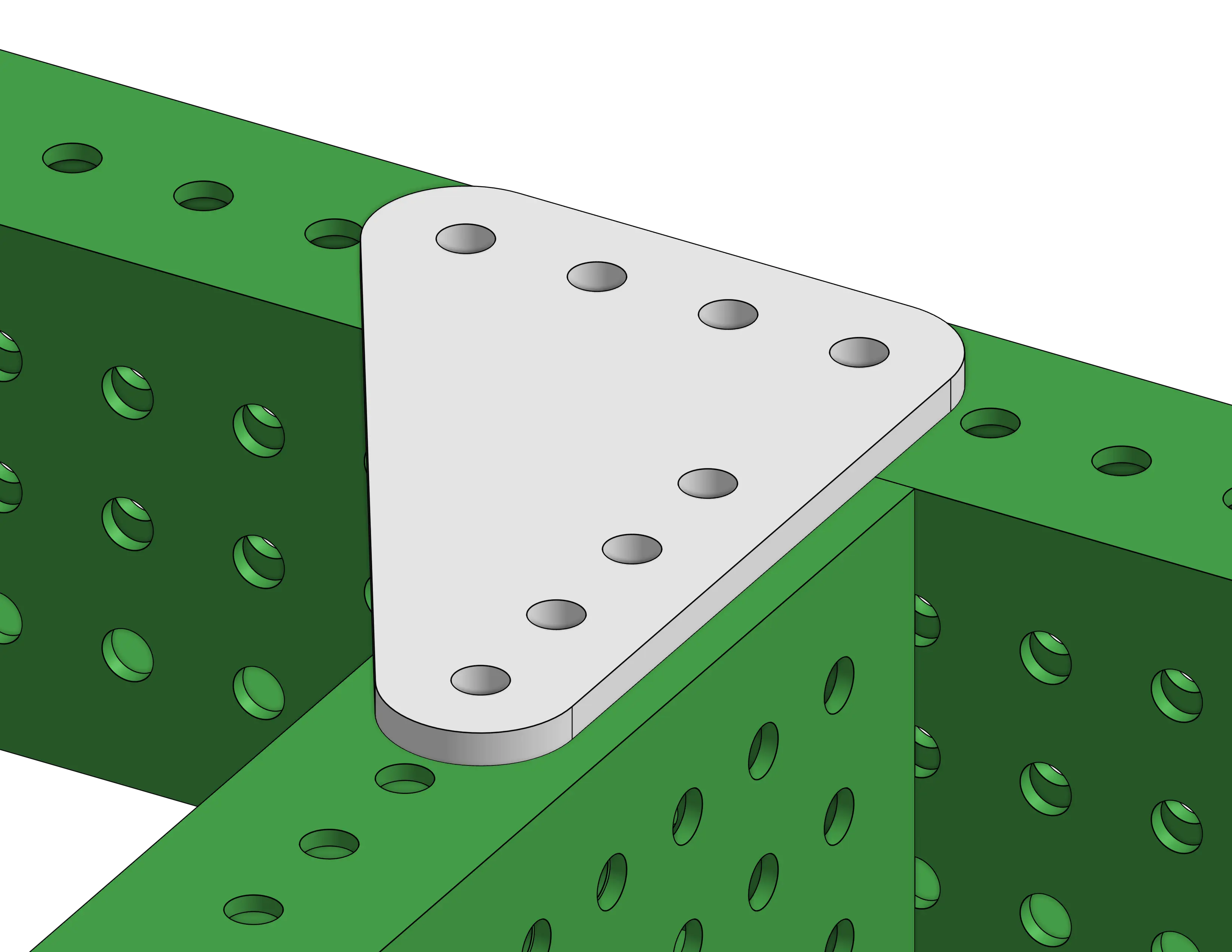 Your task is create a simple gusset for the provided drivetrain frame by repeating the workflow you should have memorized in the previous exercise. The holes for this gusset will be copied into the sketch from the tubes of the frame with the Use tool:
