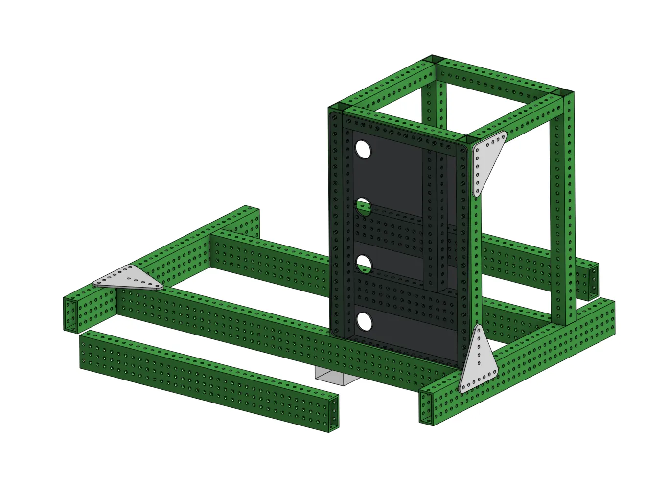 Insert the part studio from Section 2: Exercise 3 and assemble all of the plates and gussets together. Add the rest of the gussets, the swerve modules, rivets, and bolts.