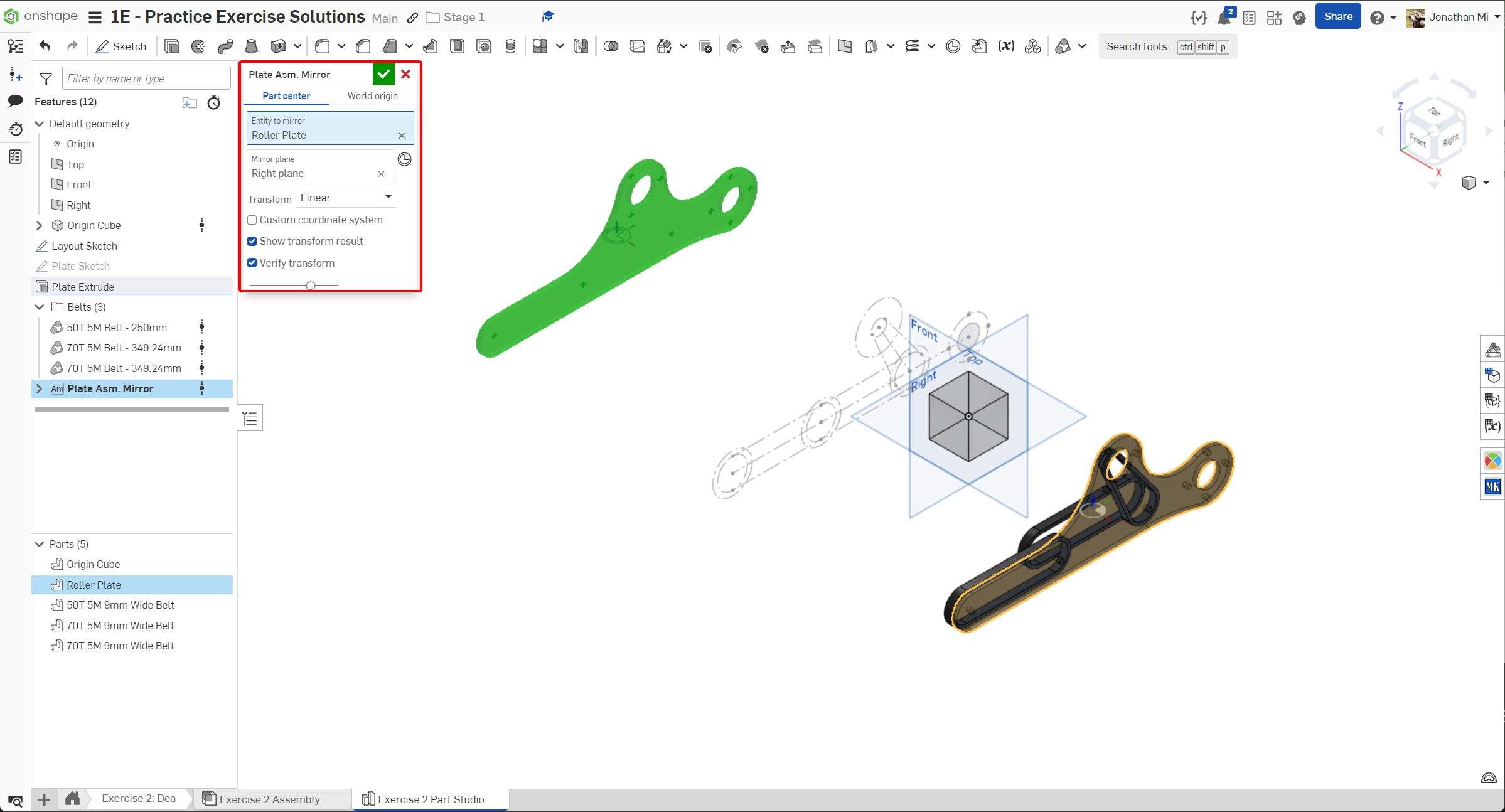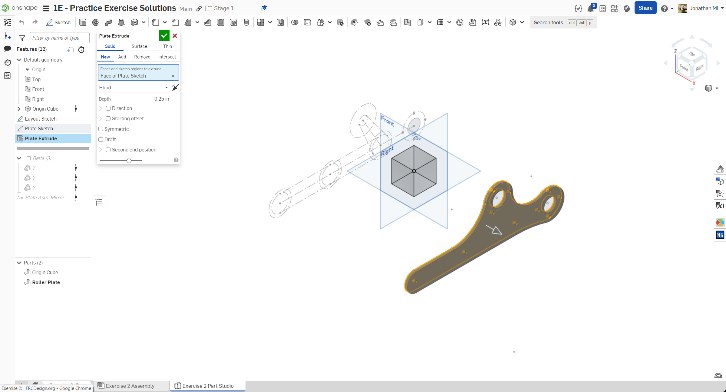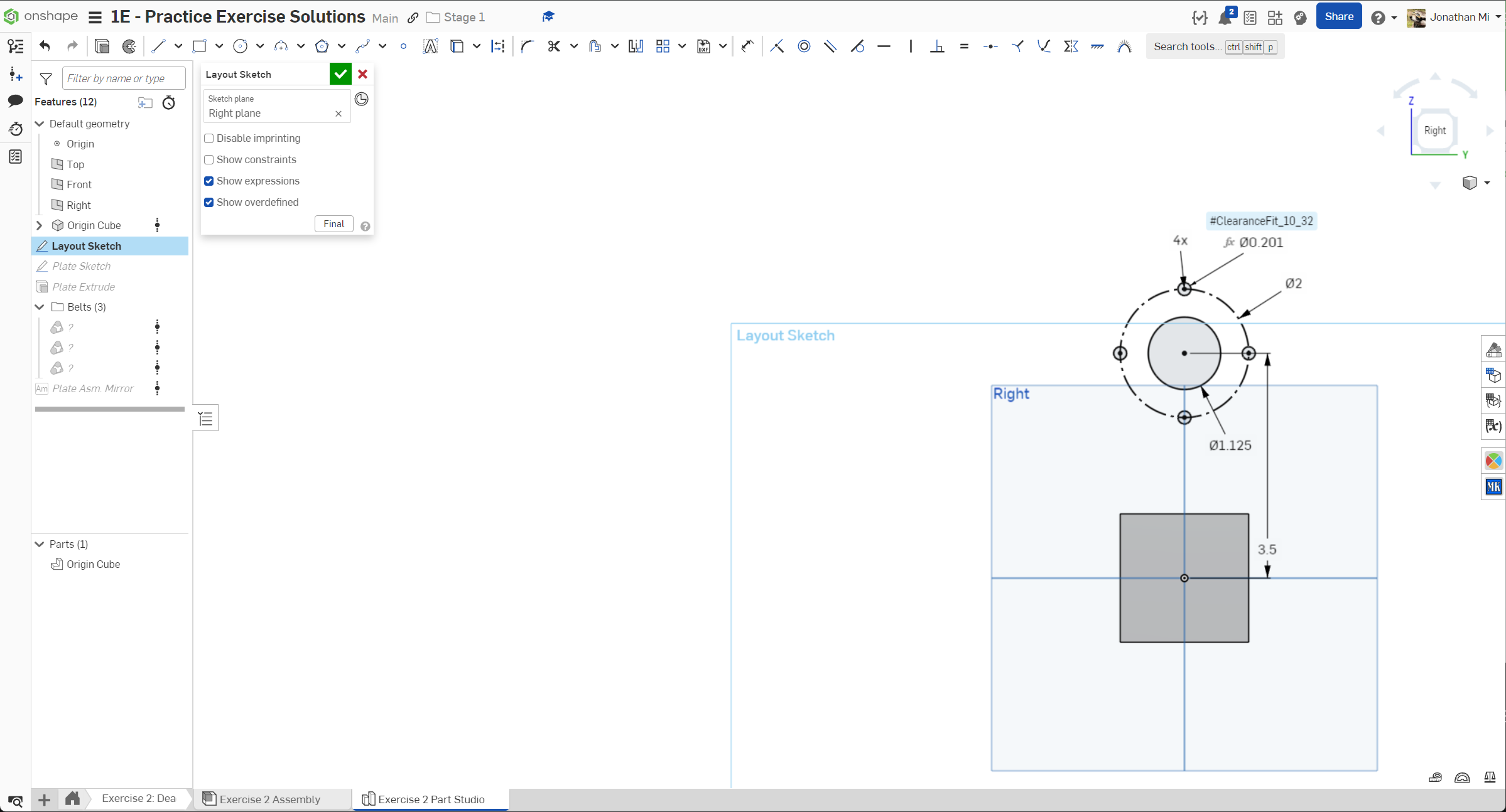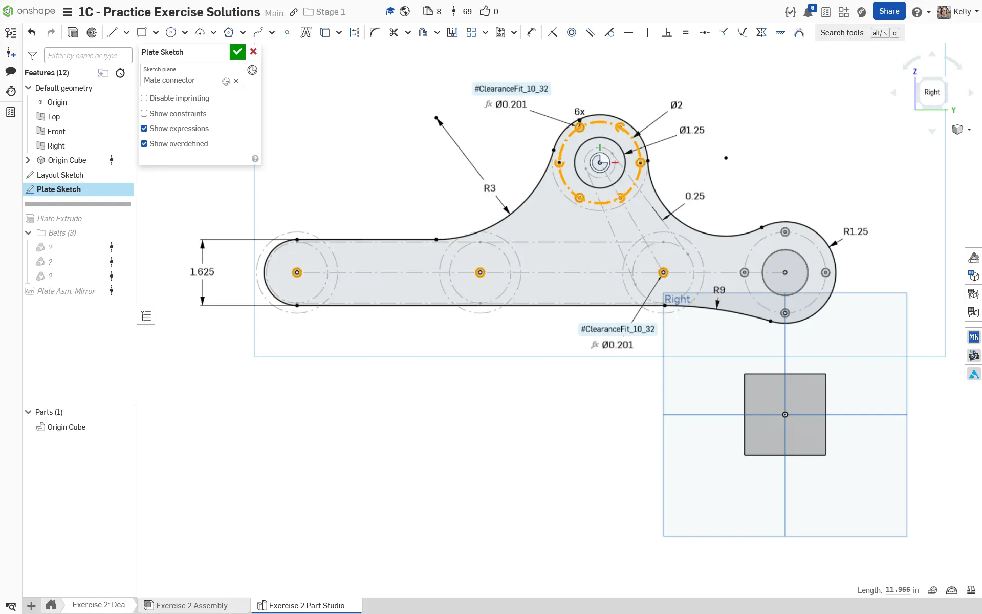 Navigate to the "Exercise #2 Part Studio" tab in your copied document and follow the instructions in the slides to complete the part studio for this exercise.