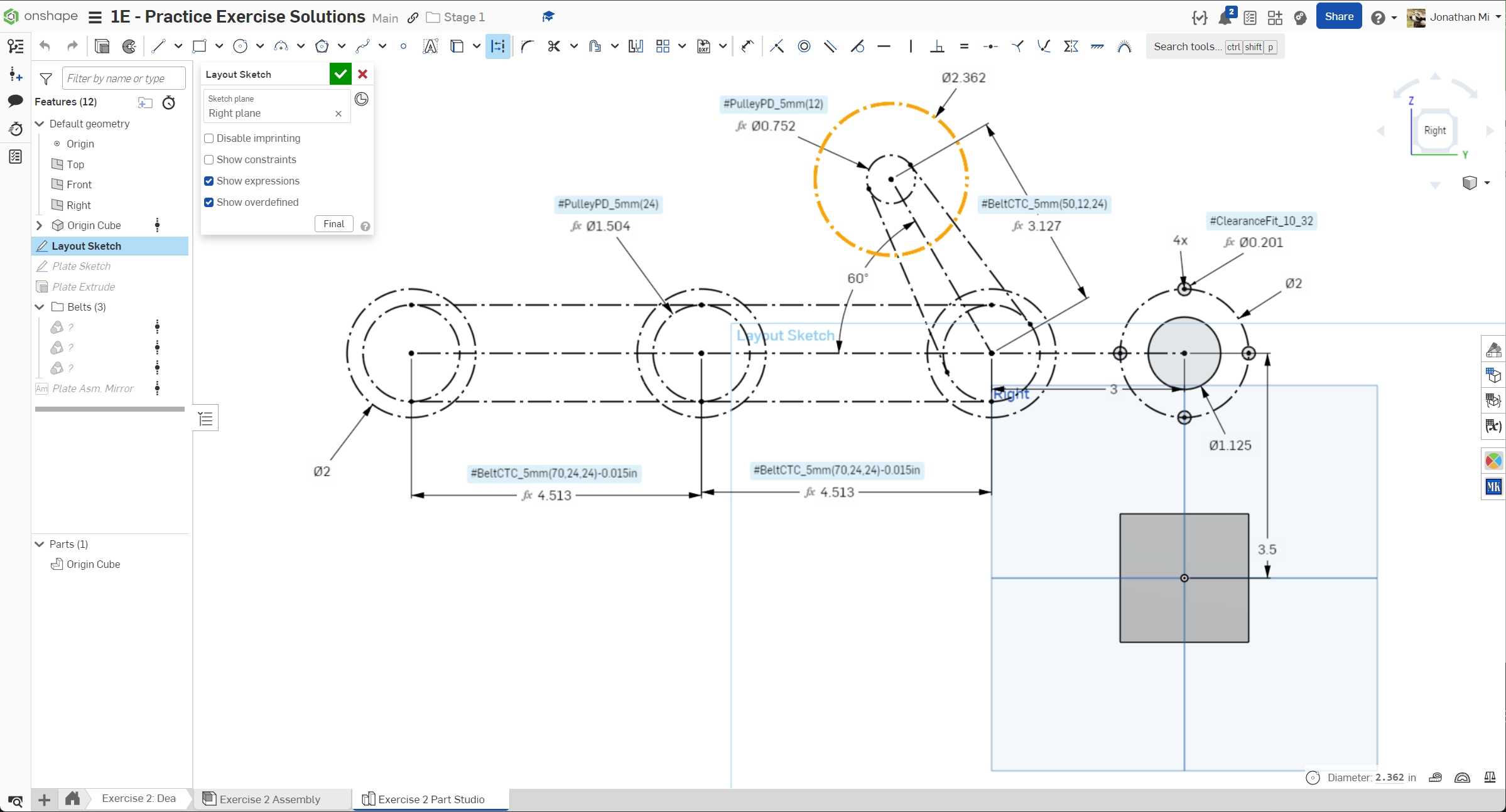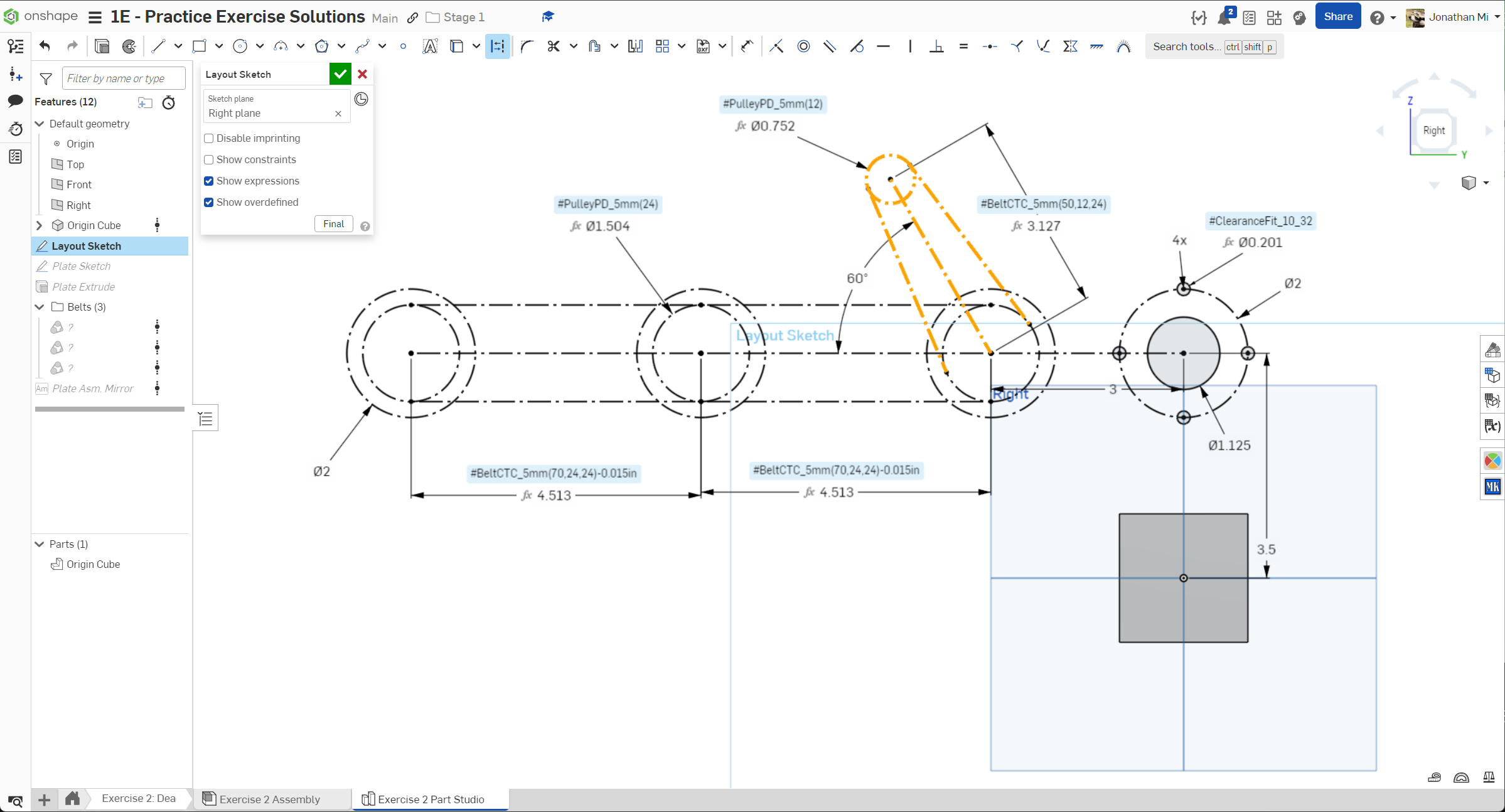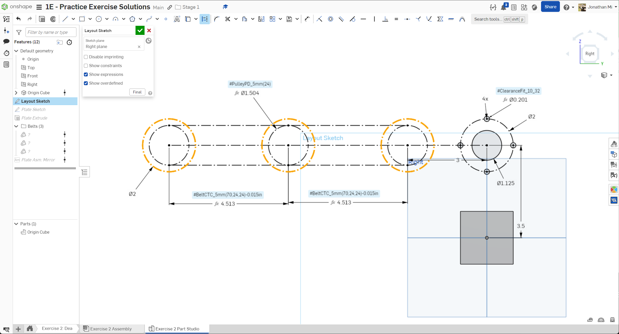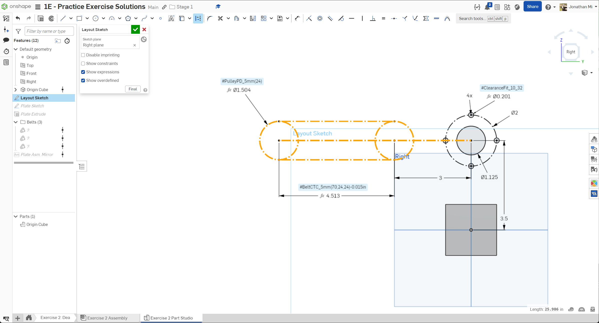 Navigate to the "Exercise #2 Part Studio" tab in your copied document and follow the instructions in the slides to complete the part studio for this exercise.