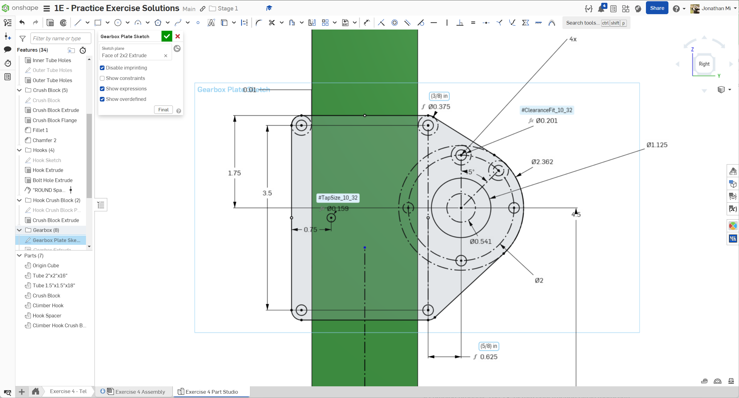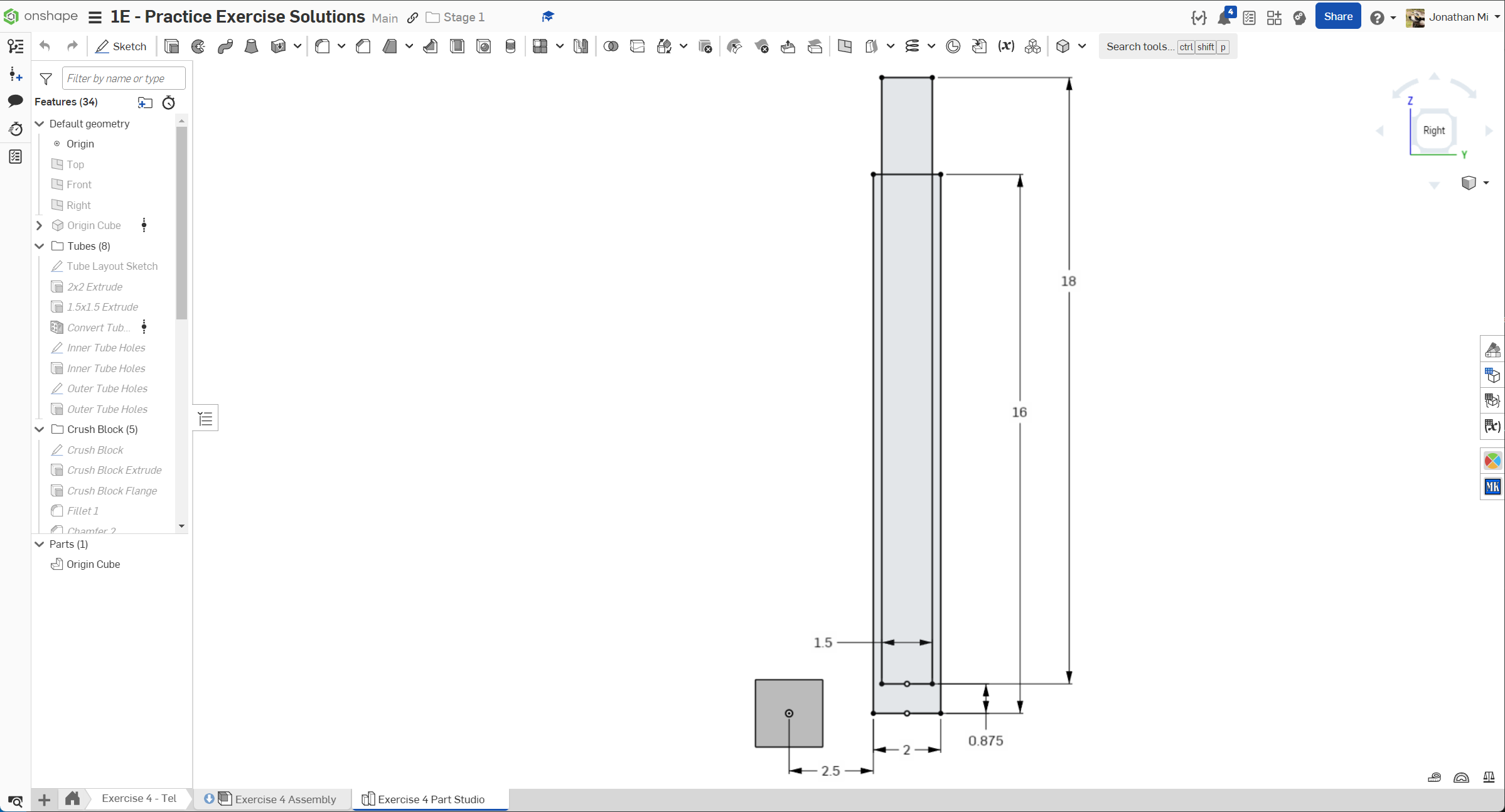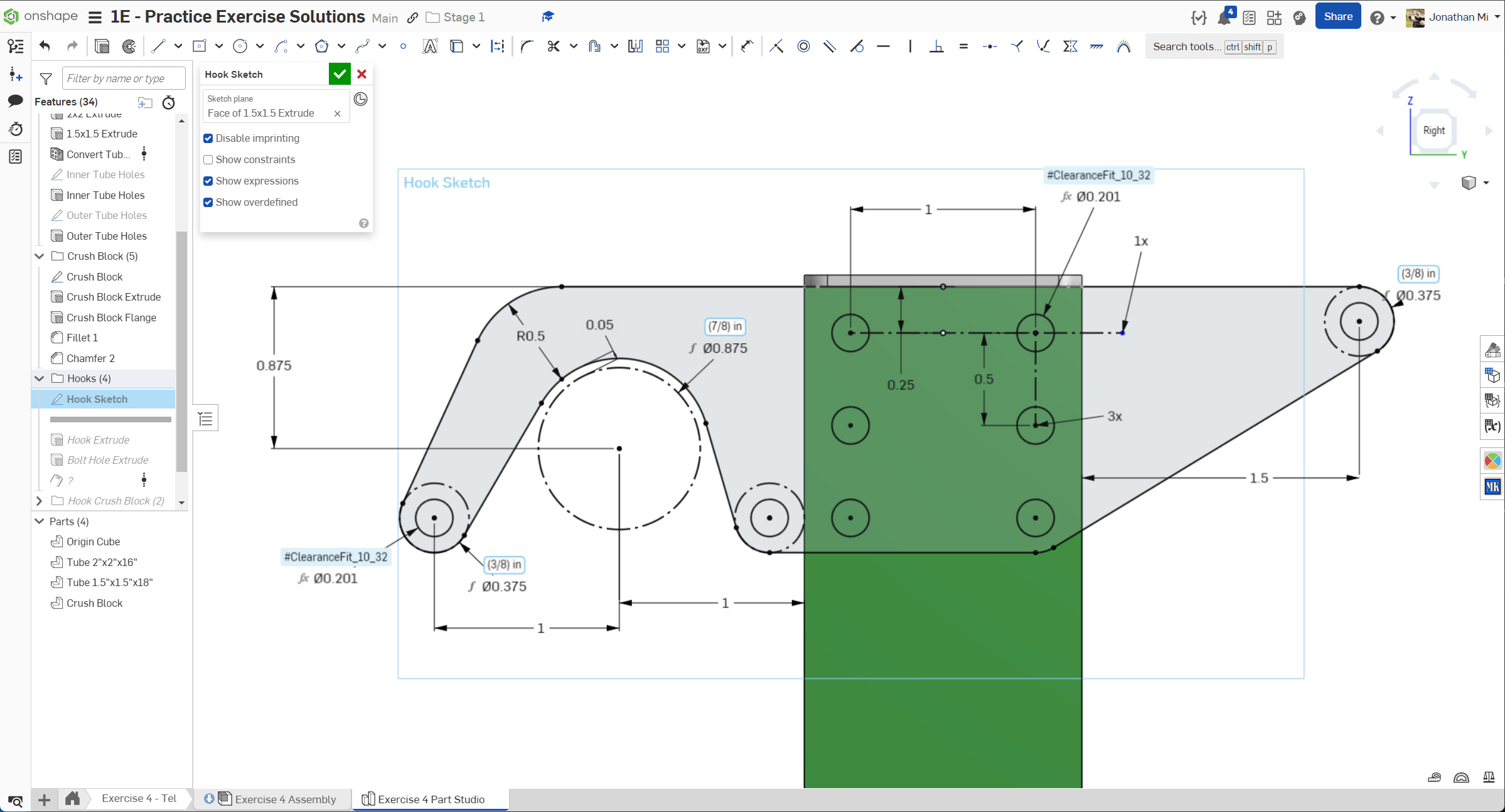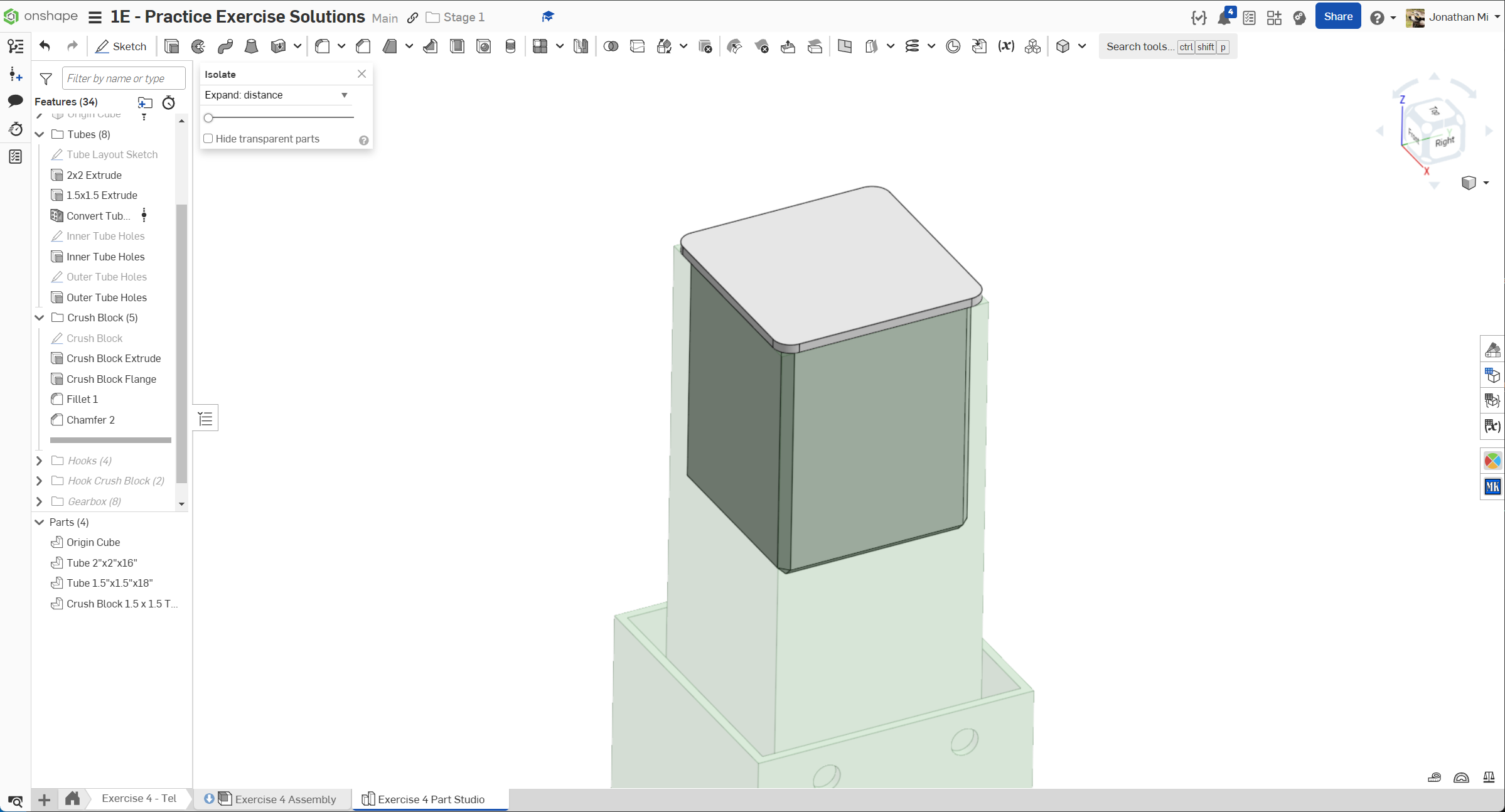 Navigate to the "Exercise #4 Part Studio" tab in your copied document and follow the instructions in the slides to complete the part studio for this exercise.
