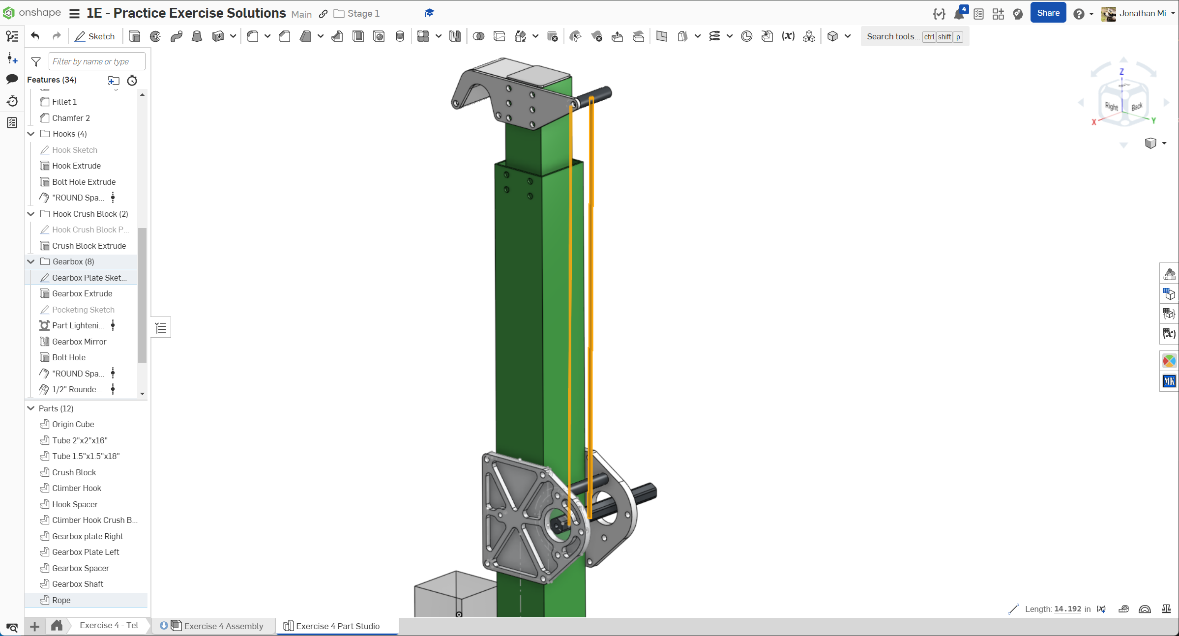 In this exercise, you will be modeling a telescoping climber. This mechanism features WCP GreyT telescoping bearing blocks and REV MAXPlanetary mounting gearbox plates. Be sure to pay close attention to hook and gearbox sketches when modeling.