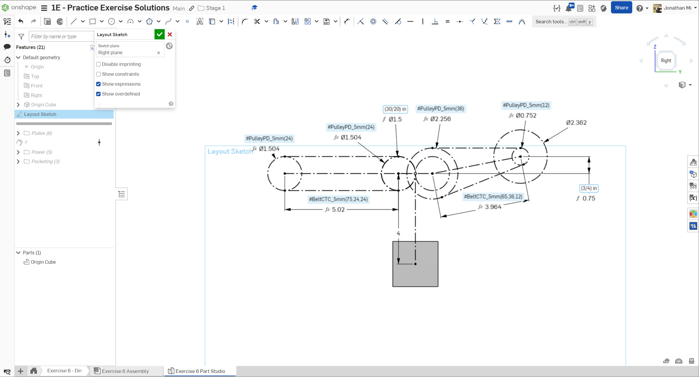 Navigate to the "Exercise #6 Part Studio" tab in your copied document and refer to the solution document to complete the part studio for this exercise. The following instruction slides only provide a general outline and some key details.