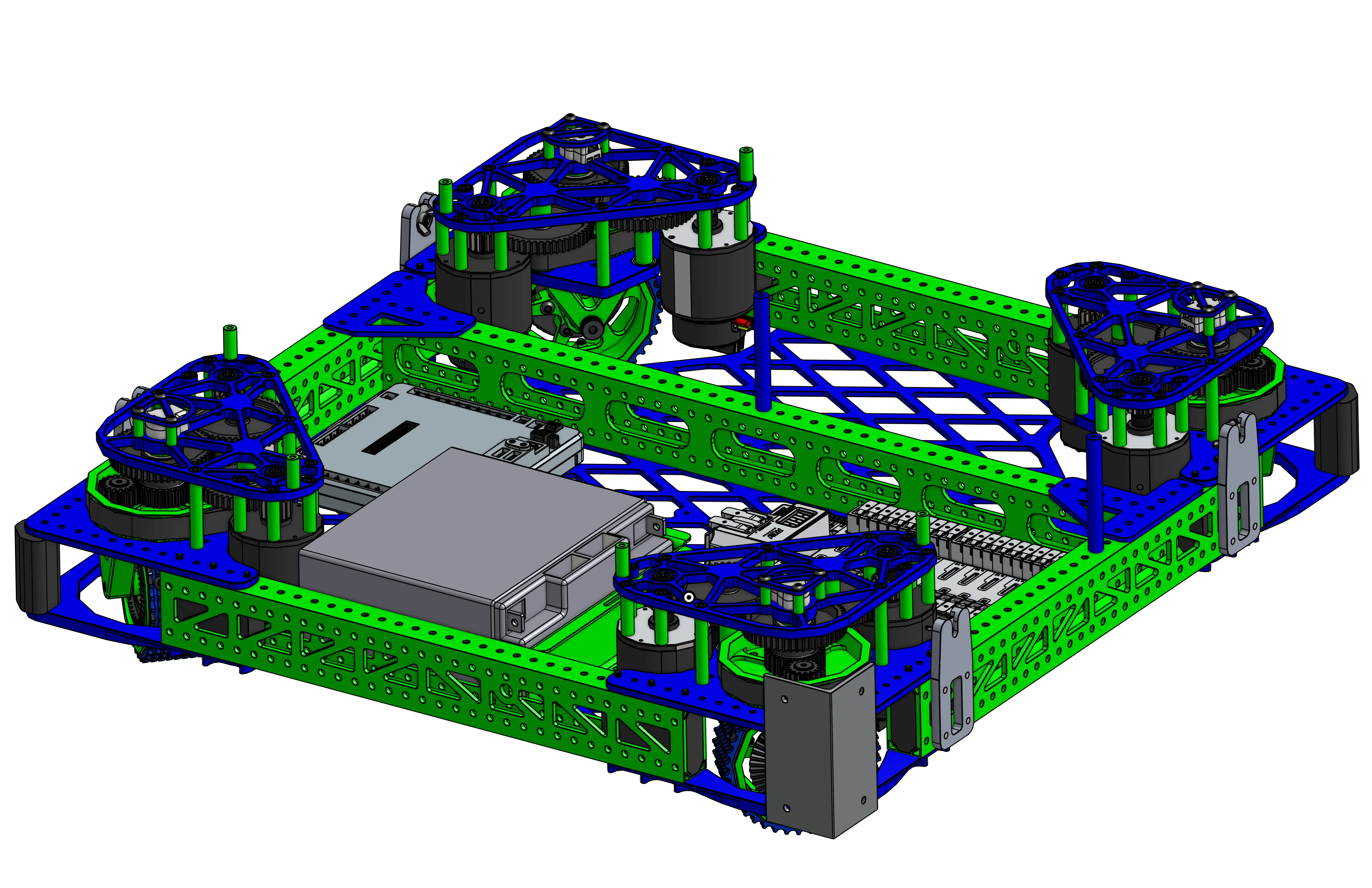The drivebase is the single most important part of your robot, if you can't move, you can't score or play defense. All other mechanisms will also build on top of the drivebase. These examples can provide useful inspiration for electronics layout, bellypan design, and structural supports.