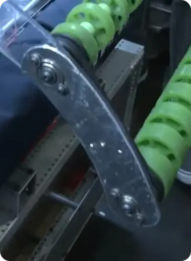 1678 designed their intake polycarbonate plates to hardstop on each other in both the fully extended and retracted positions. This makes programming the intake easier, and helps the robot pass inspection by proving that the intake cannot extend past the frame perimeter extension limit. In a pneumatically actuated intake, having the pivot plates hardstop allows for some error margin on the pneumatic piston's stroke.